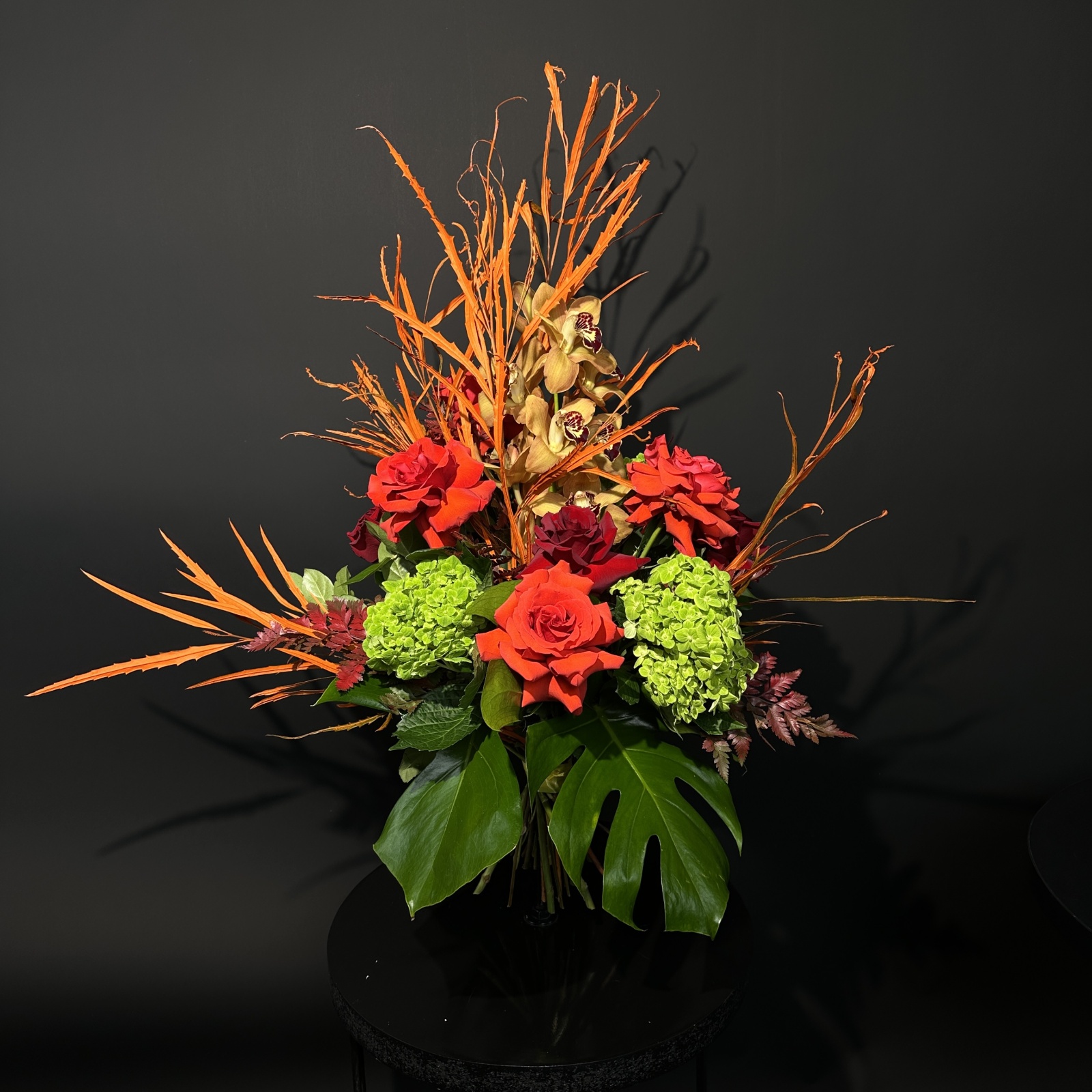 Состав: роза 6, гортензия 3, ветка цимбидиум 1, папоротник 0,5, салал 0,5 и прочее. под заказ