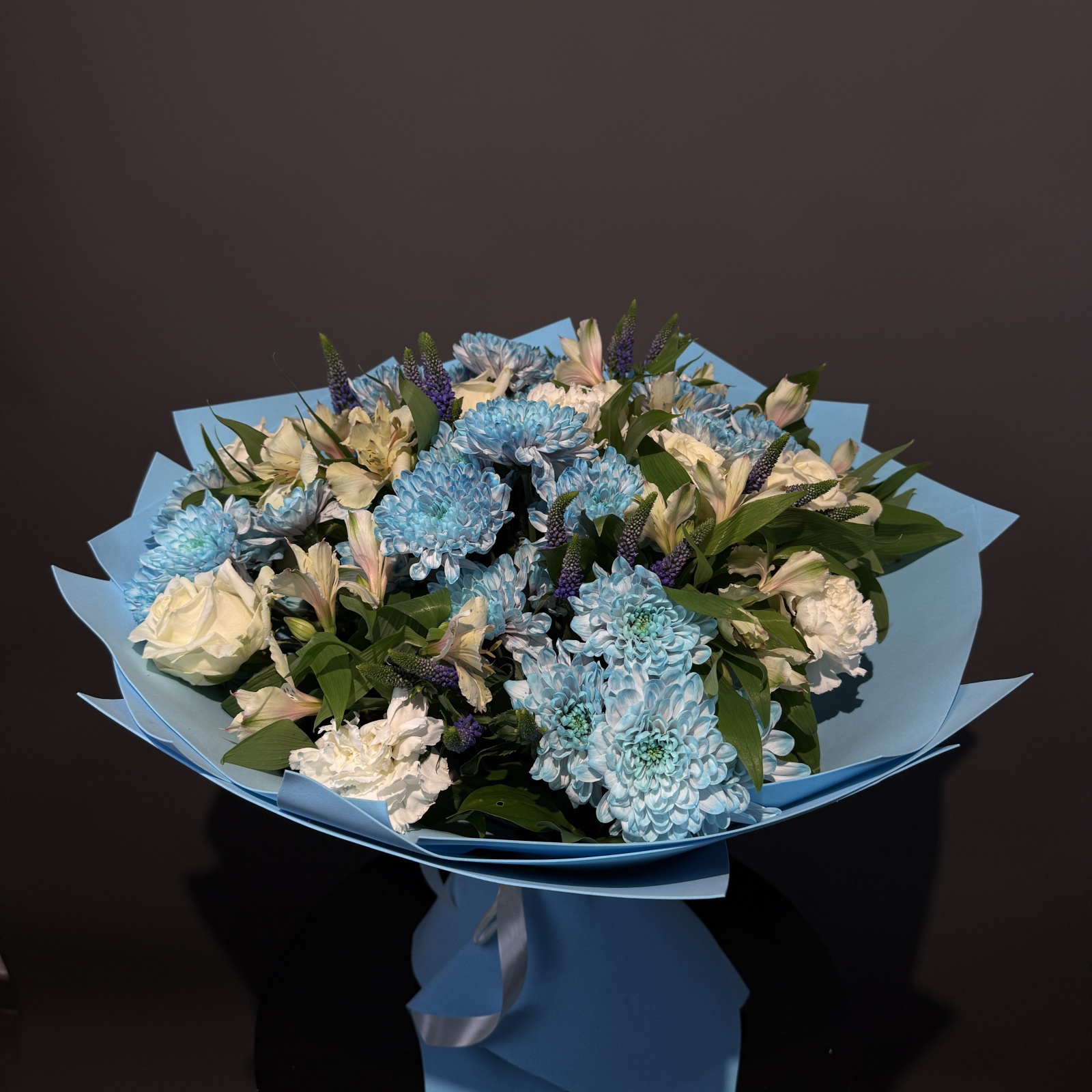 Состав: роза 5, альстромерия 5, гвоздика 5, хризантема кустовая 5, рускус 0,5 и прочее. под заказ