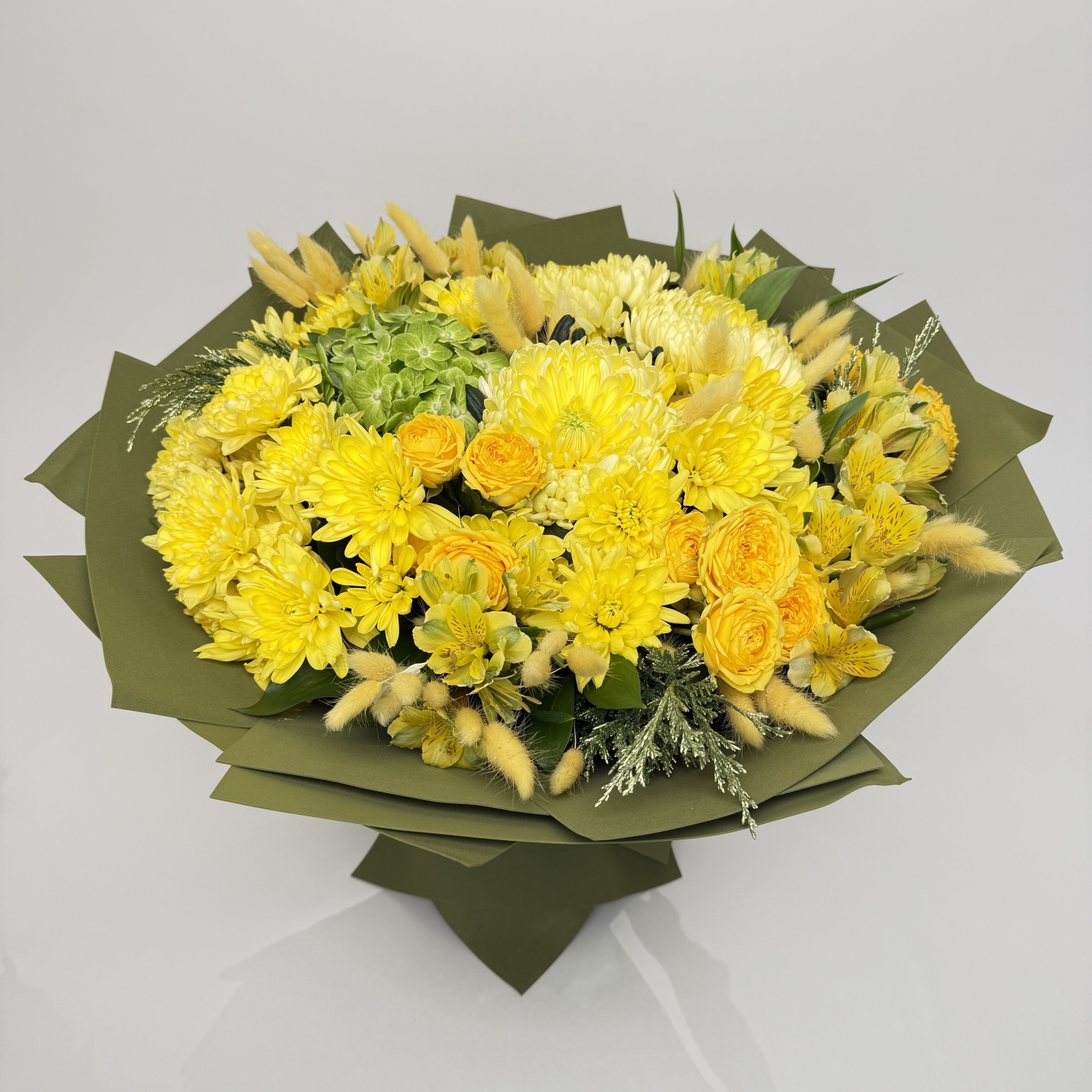 Состав: роза 5, альстромерия 3, роза кустовая 3, салал 0,5 и прочее. под заказ