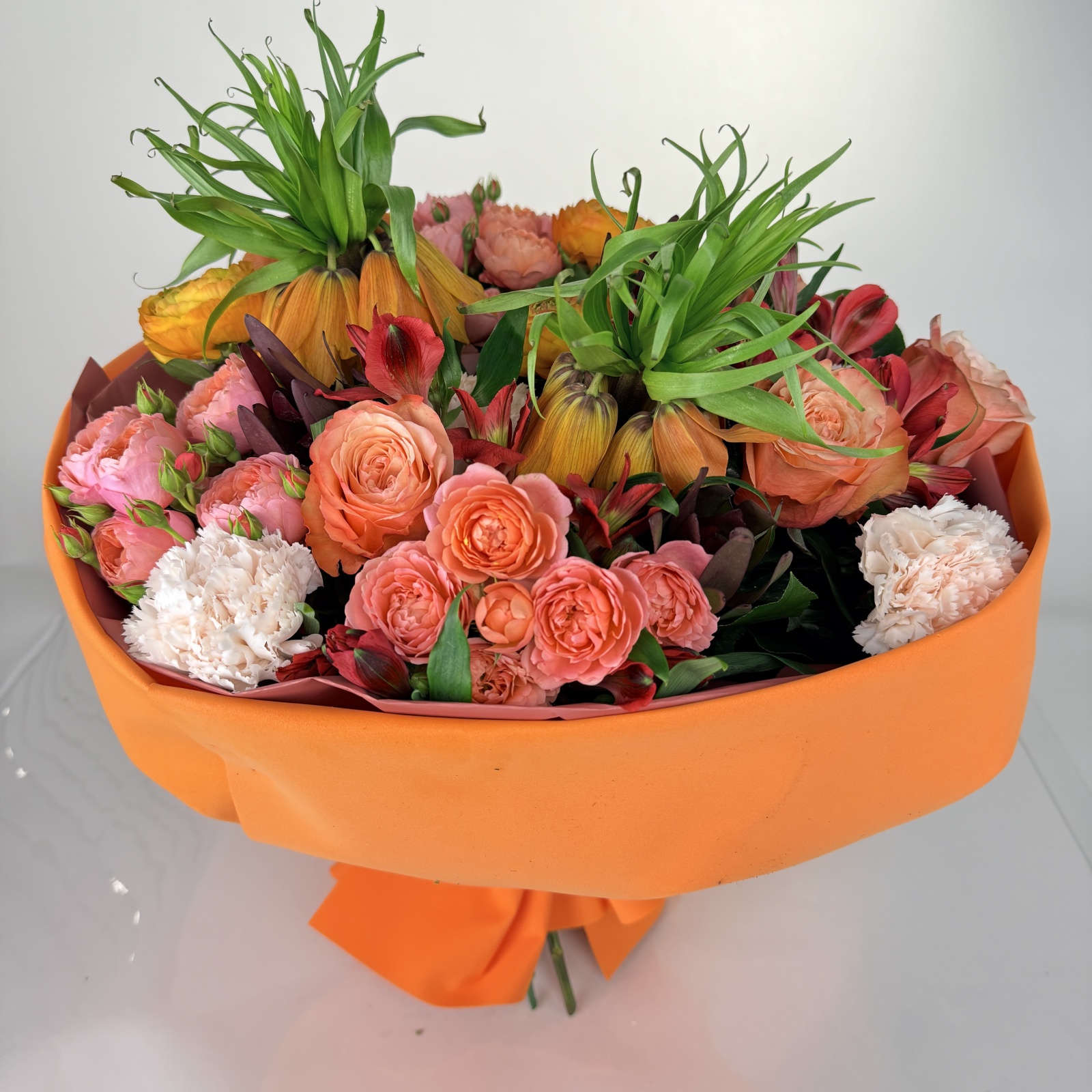 Состав: гвоздика 7, леукадендрон 4, ранункулюс 3, роза 3, альстромерия 2, роза кустовая 2, клематис 2, салал 0,5 и прочее. под заказ