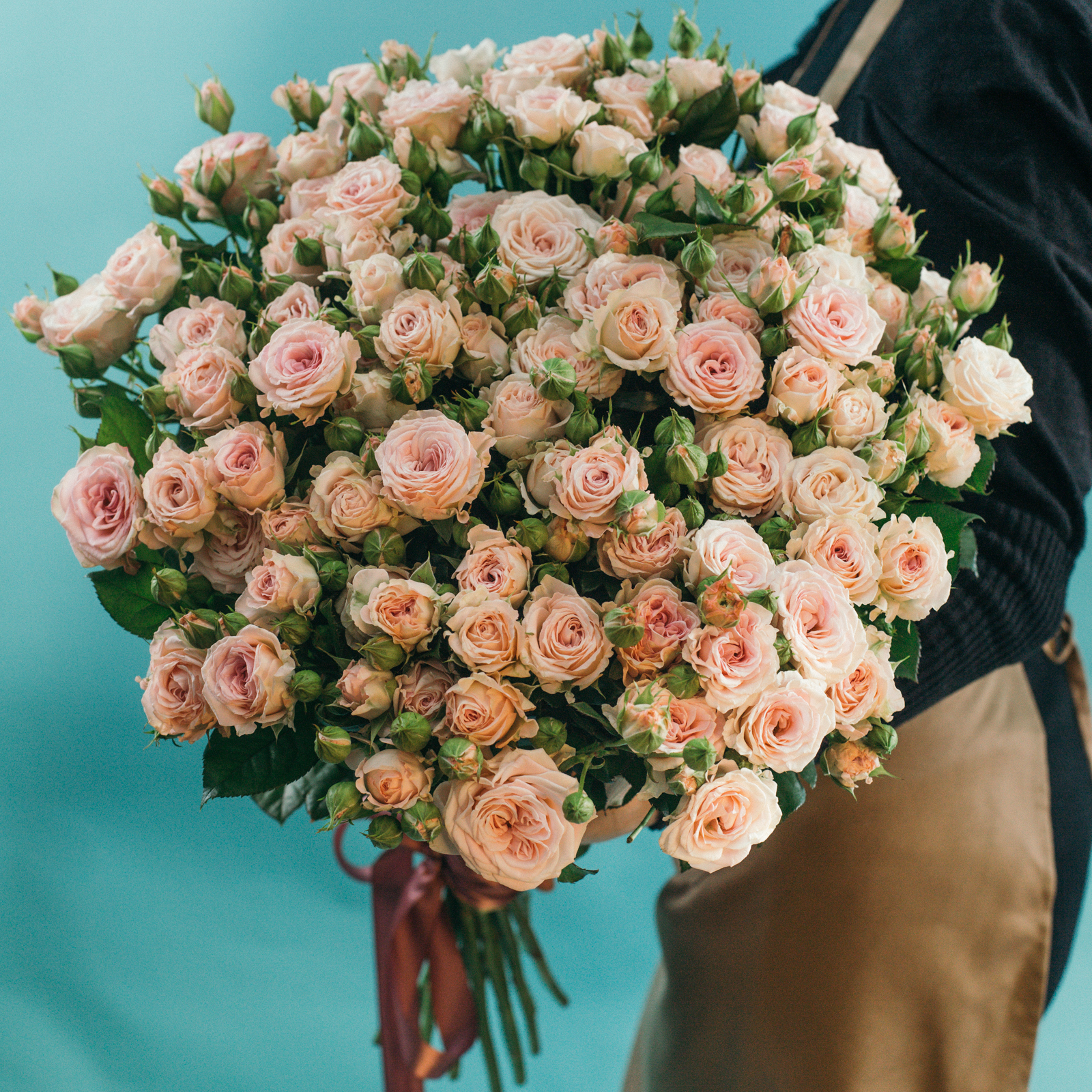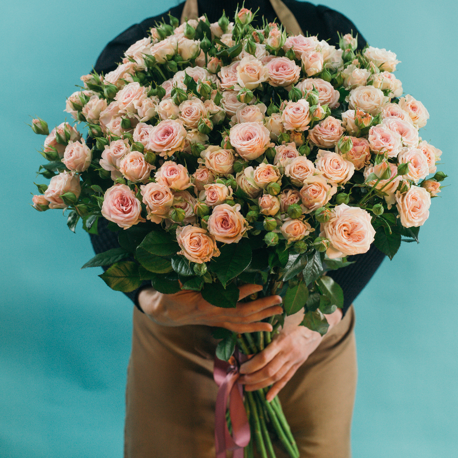 19 кустовых пионовидных нежно-розовых роз (Россия)