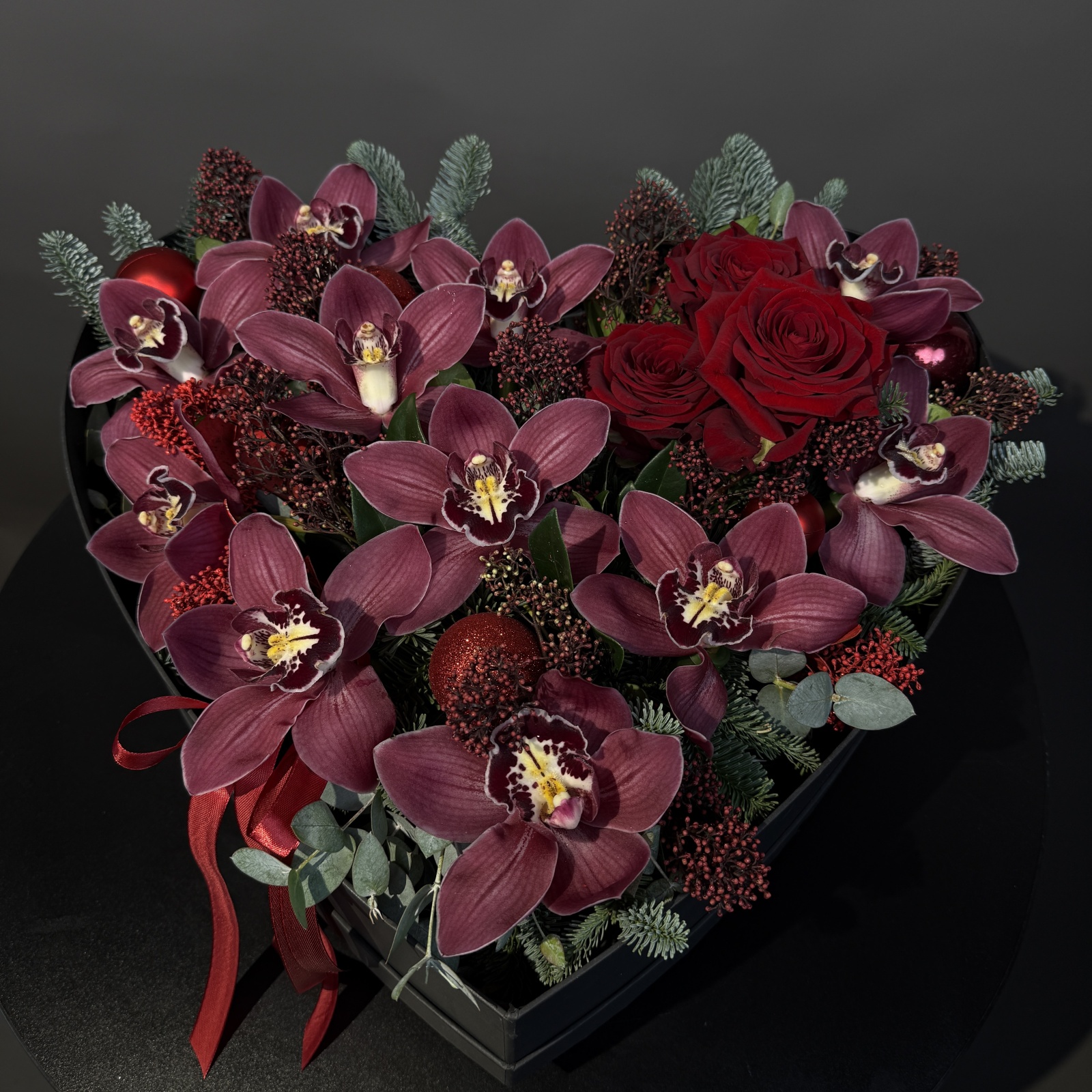 Состав: гербера 5, роза 3, эвкалипт 1, ветка цимбидиум 0,7 и прочее.