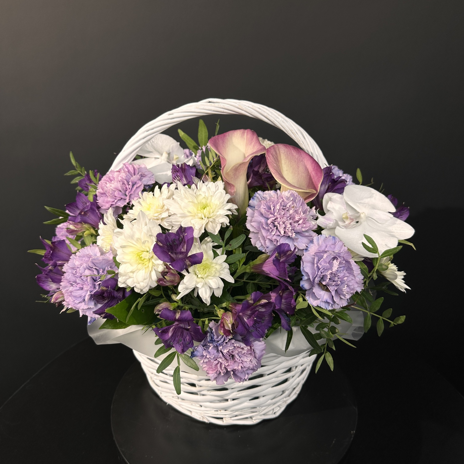 Состав: гвоздика 10, альстромерия 5, хризантема кустовая 2 и прочее. под заказ