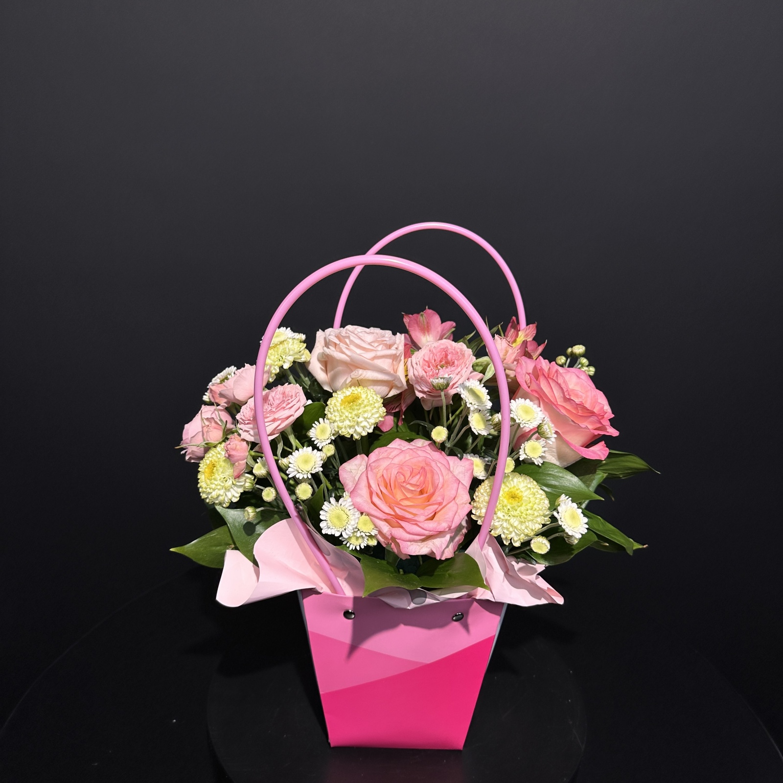Состав: роза 3, хризантема кустовая 2, альстромерия 1, роза кустовая 0,5, рускус 0,25 и прочее.