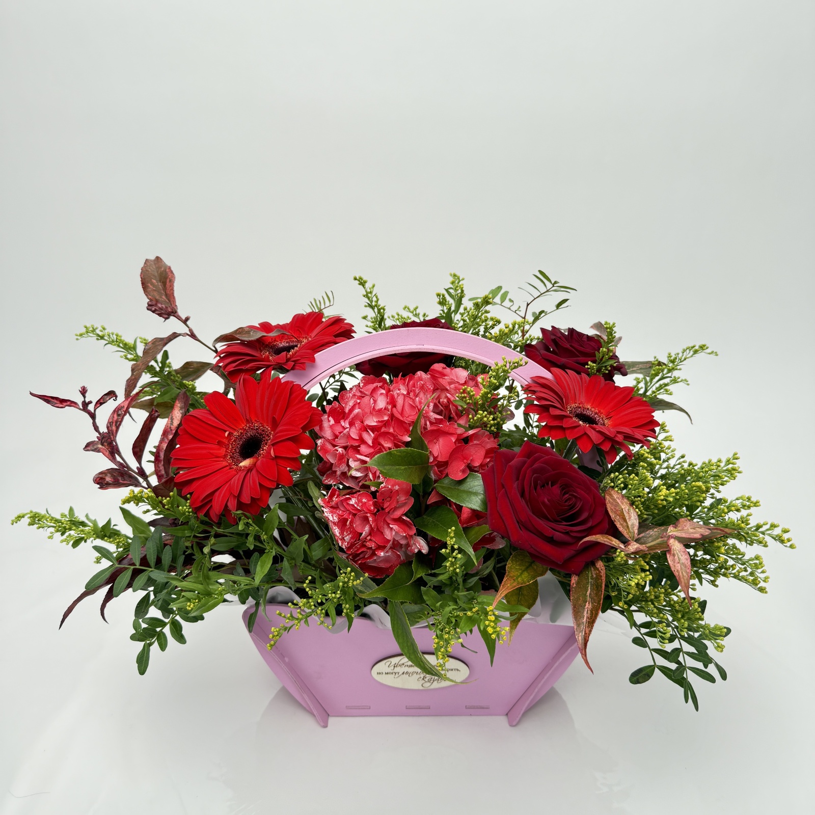 Состав: роза 3, гербера 3, солидаго 2, гортензия 1, фисташка 0,5 и прочее.
