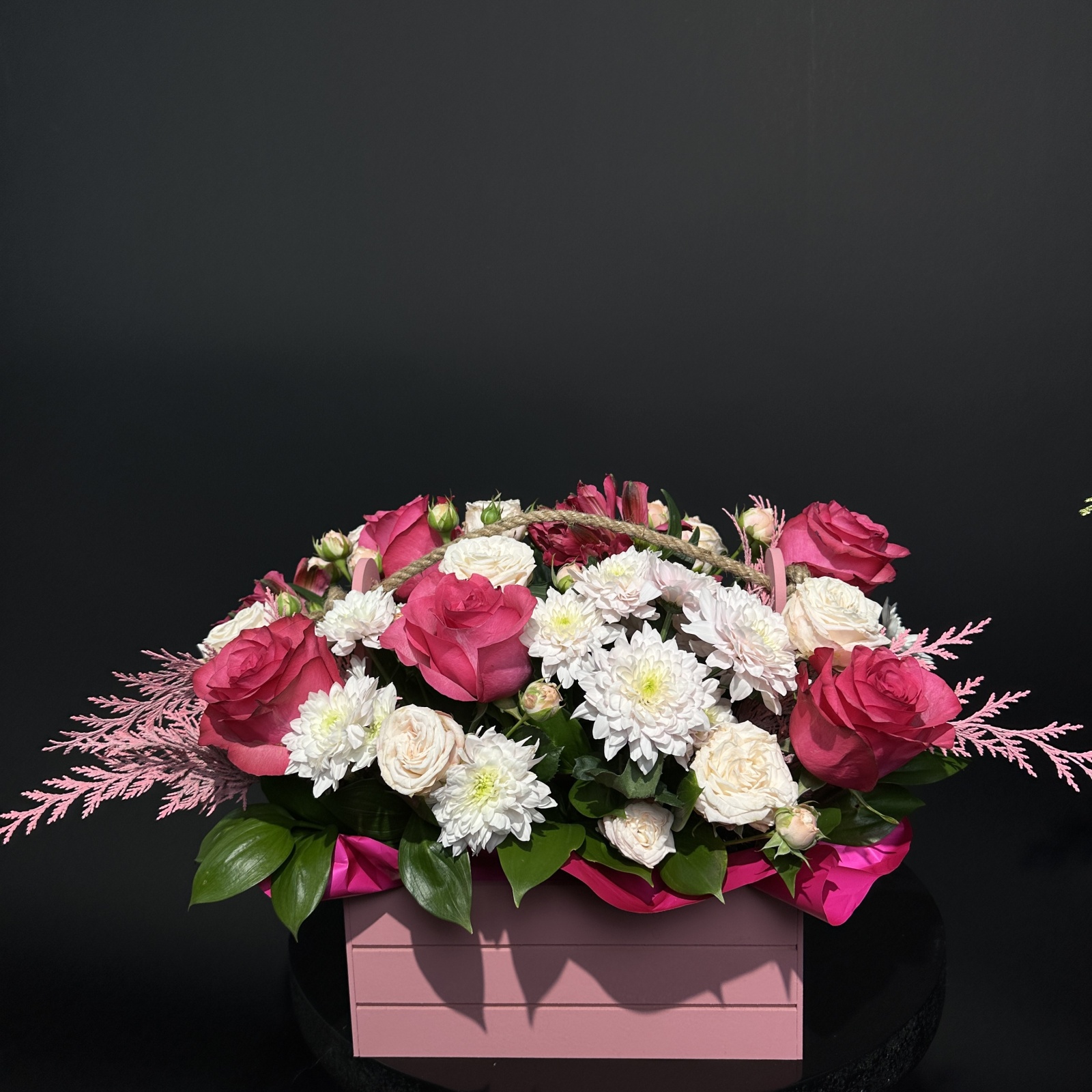 Состав: гвоздика 5, роза 4, гербера 3, альстромерия 2, хризантема кустовая 2, рускус 0,2 и прочее. под заказ