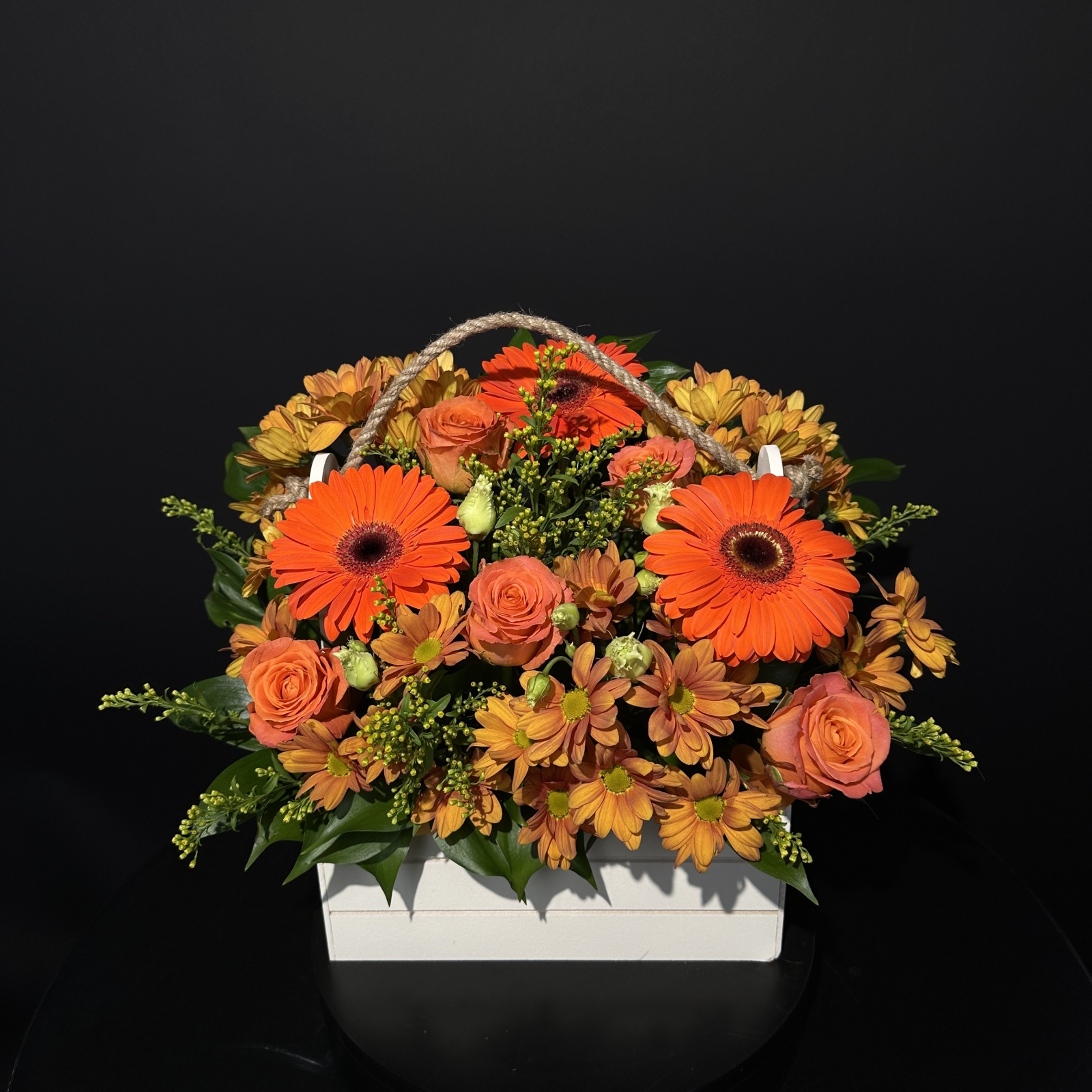 Состав: роза 5, хризантема кустовая 3, гербера 3, солидаго 2, рускус 0,5 и прочее. под заказ
