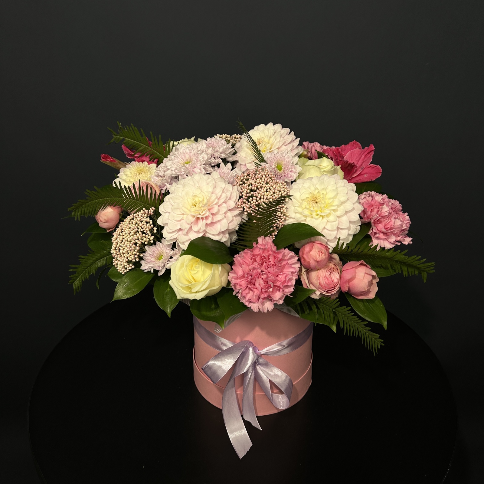 Состав: роза 3, гвоздика 3, гладиолус 3, хризантема кустовая 1, рускус 0,7 и прочее. под заказ