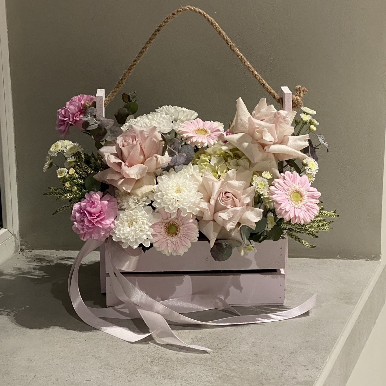 Состав: гвоздика 3, гербера 3, роза 2, хризантема кустовая 2, гортензия 1 и прочее. под заказ