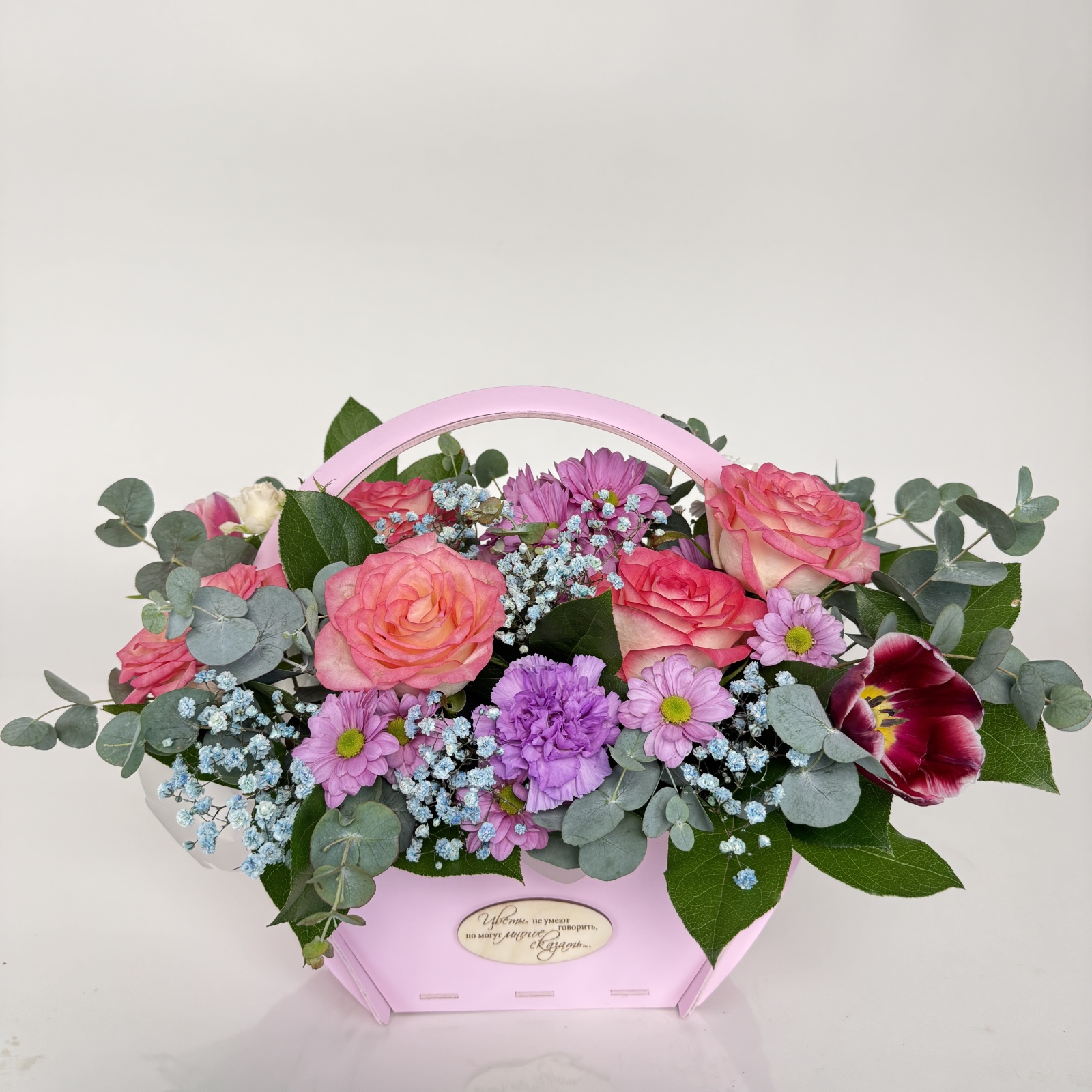 Состав: роза 5, гвоздика 3, тюльпан 3, хризантема кустовая 1, гербера 1, салал 0,5 и прочее. под заказ