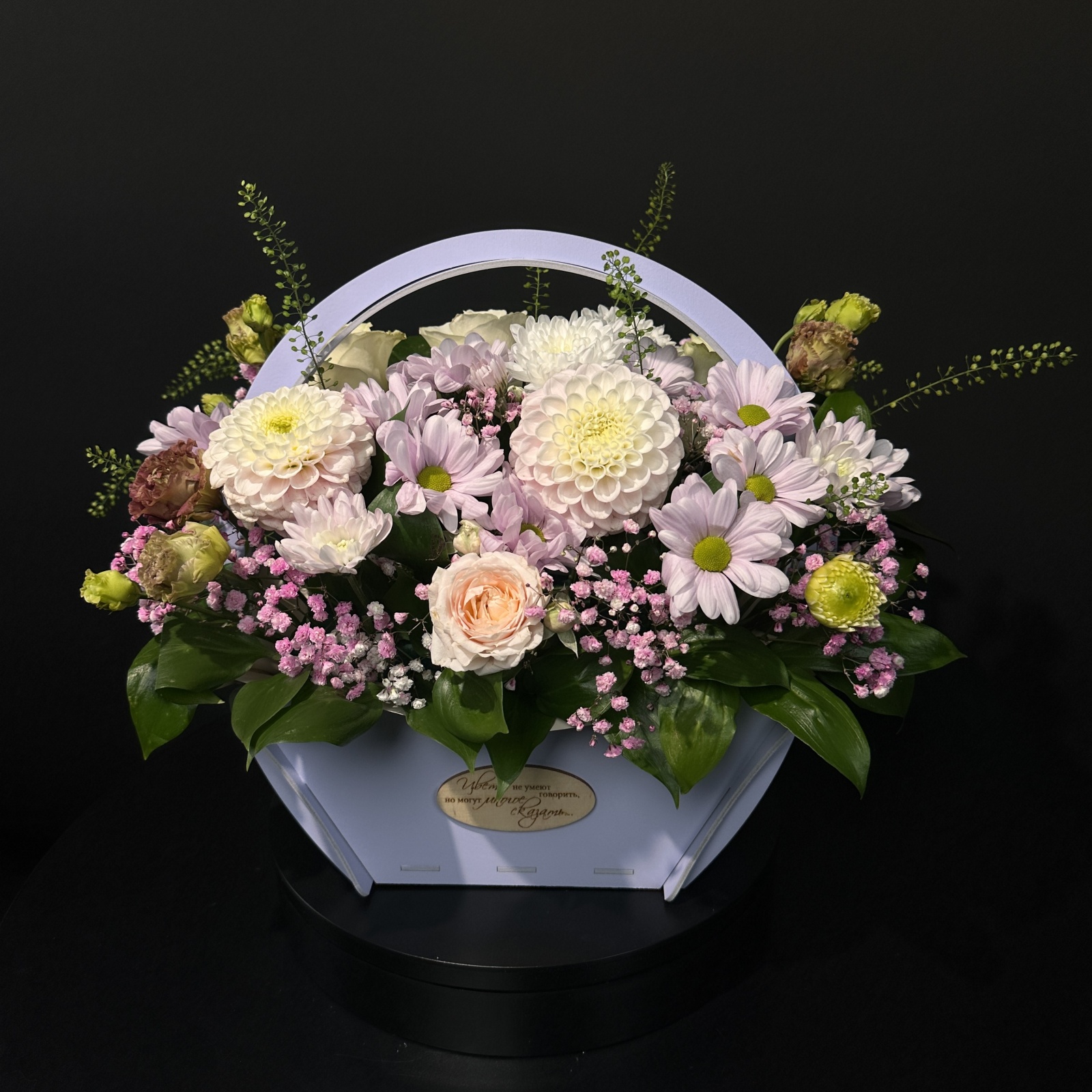 Состав: роза 3, хризантема кустовая 1, рускус 0,5 и прочее.