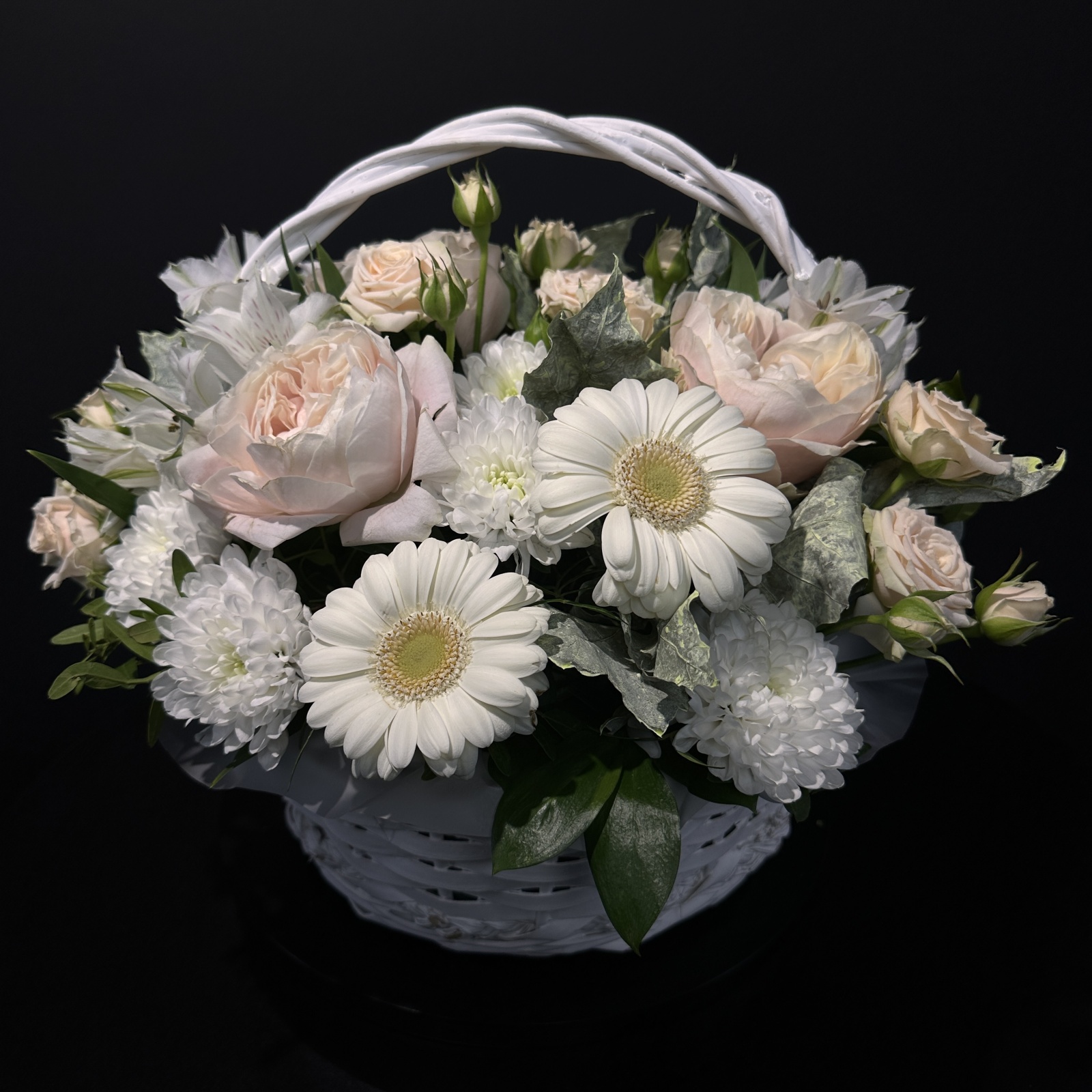 Состав: роза 3, альстромерия 3, гербера 3, роза кустовая 1, хризантема кустовая 1 и прочее. под заказ