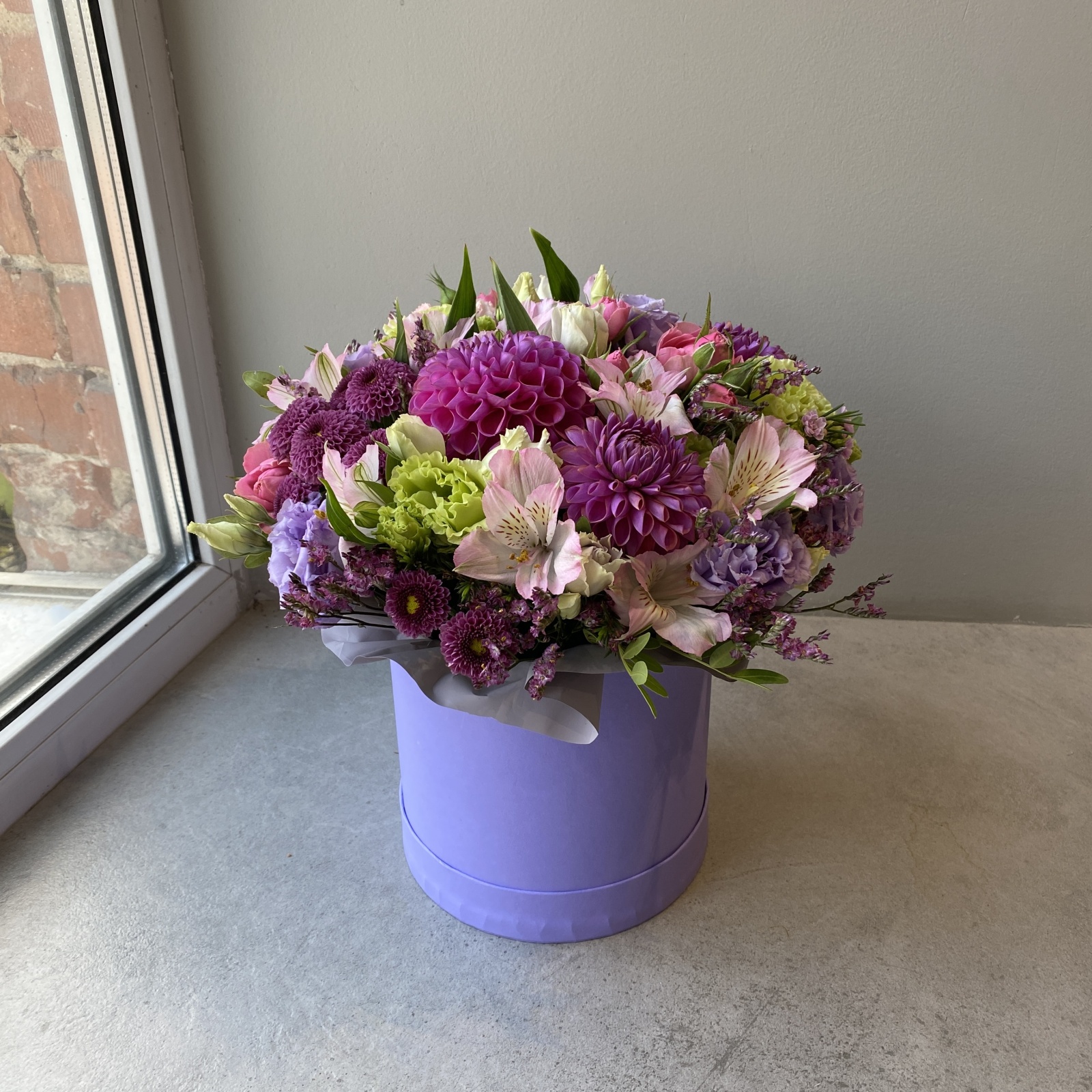 Состав: хризантема 2, альстромерия 2, лизиантус 2, лимониум 1, гвоздика 1, роза кустовая 1 и прочее. под заказ