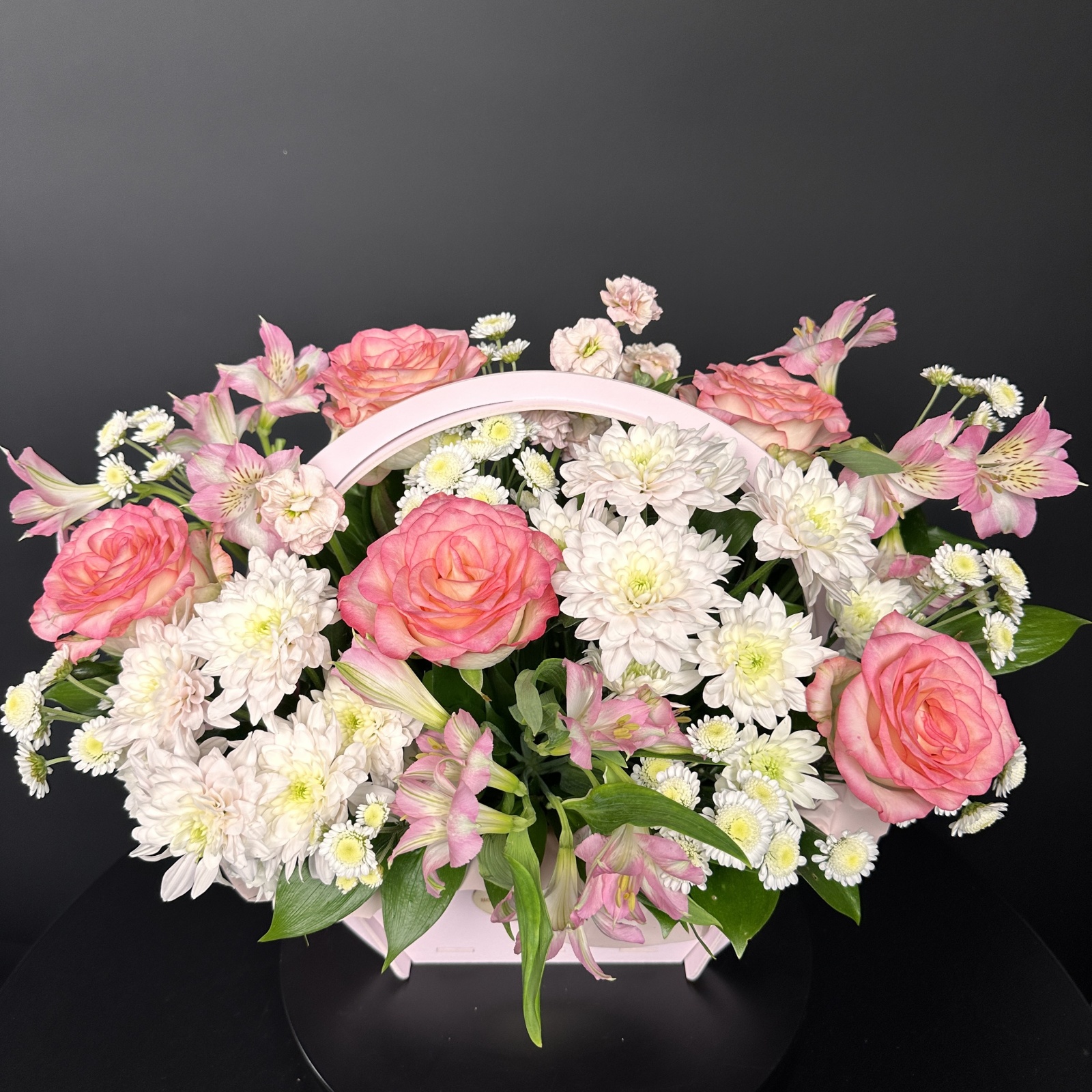 Состав: роза 6, альстромерия 3, хризантема кустовая 3, маттиола 1, рускус 0,5 и прочее. под заказ