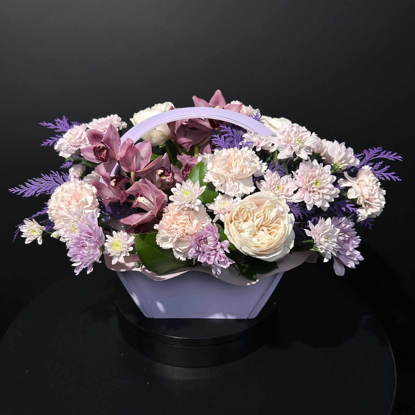 Состав: роза 2, хризантема кустовая 2, ветка цимбидиум 1 и прочее. под заказ