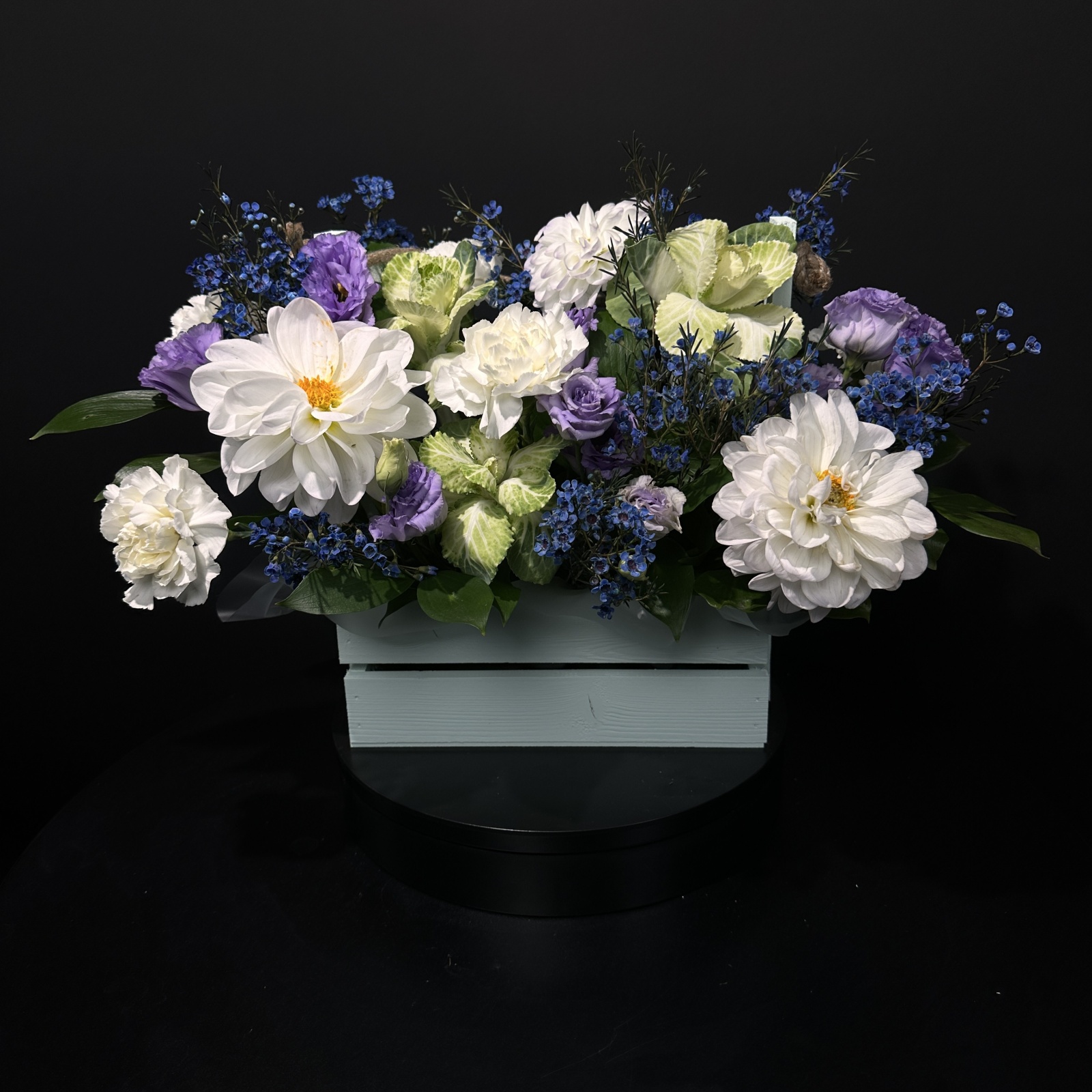 Состав: гвоздика 5, хамелациум 2, роза 1, лизиантус 1 и прочее.
