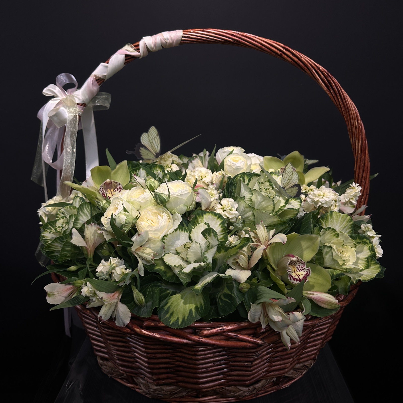 Состав: альстромерия 9, маттиола 9, роза кустовая 2, ветка цимбидиум 0,25 и прочее. под заказ