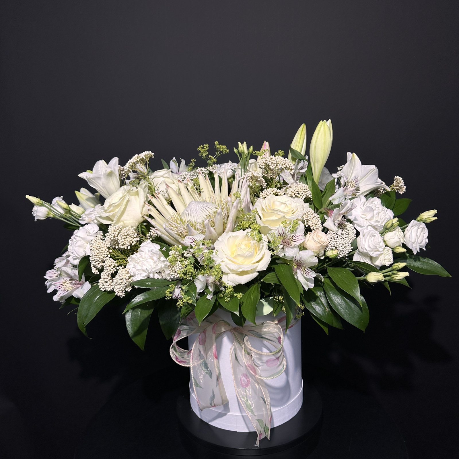 Состав: роза 5, альстромерия 5, гвоздика 5, лилия 3, лизиантус 2, рускус 0,3 и прочее. под заказ