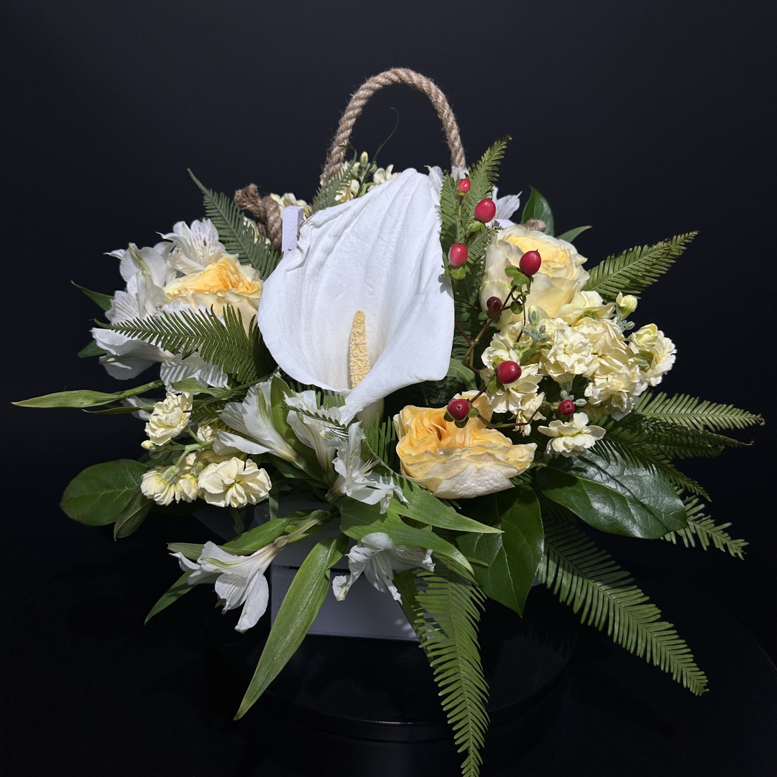 Состав: роза 3, альстромерия 3, маттиола 2, гиперикум 1 и прочее. под заказ