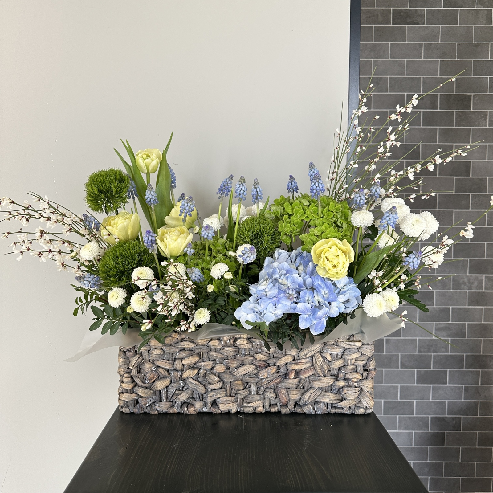 Состав: тюльпан 5, гвоздика 3, гортензия 3, хризантема кустовая 2, фисташка 0,5 и прочее. в наличии