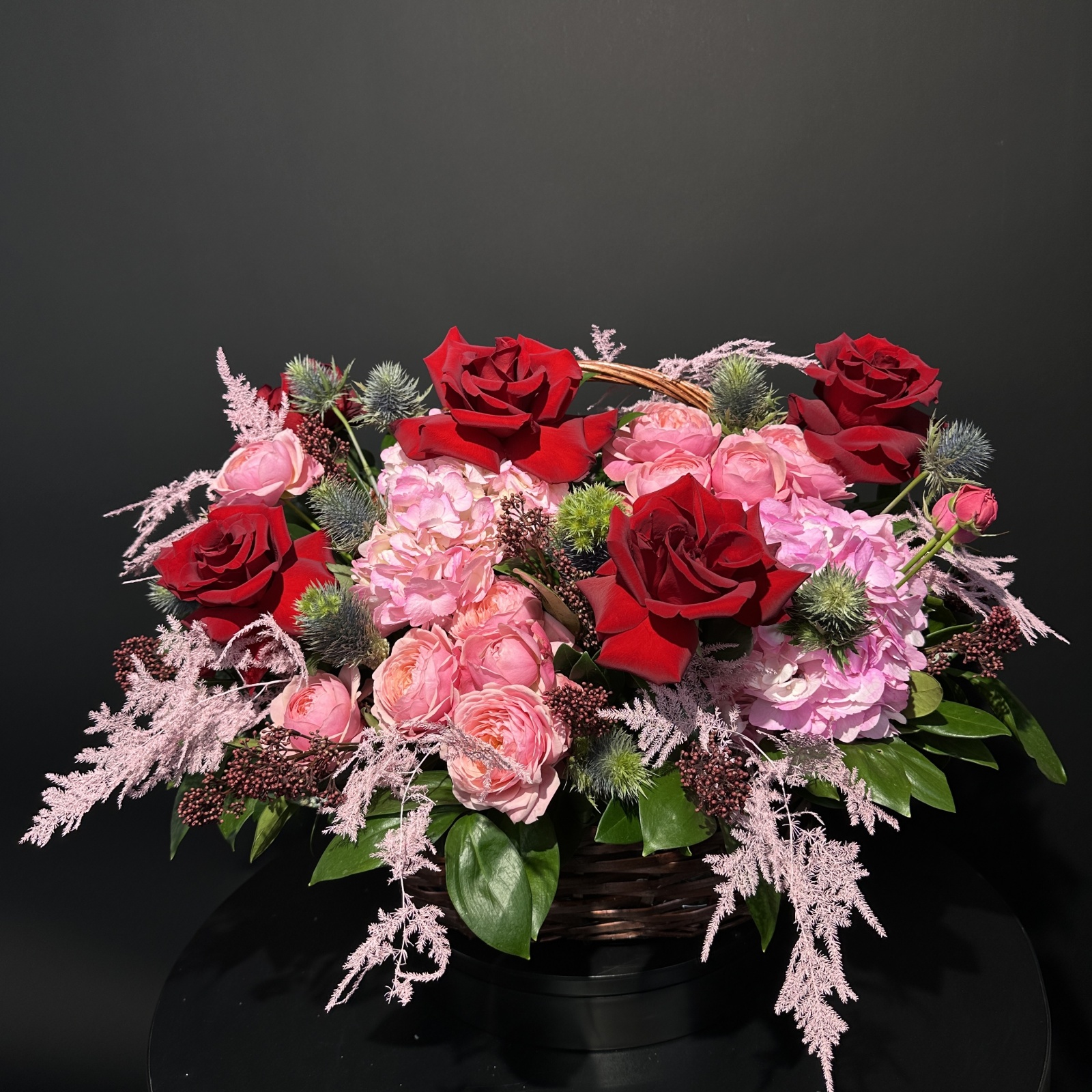 Состав: роза 6, гортензия 3, эрингиум 3, роза кустовая 2, рускус 1 и прочее. под заказ