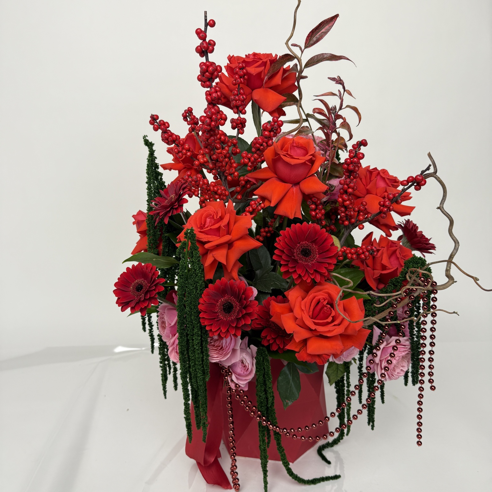 Состав: роза 9, гербера 7, роза кустовая 3, рускус 0,5 и прочее. под заказ