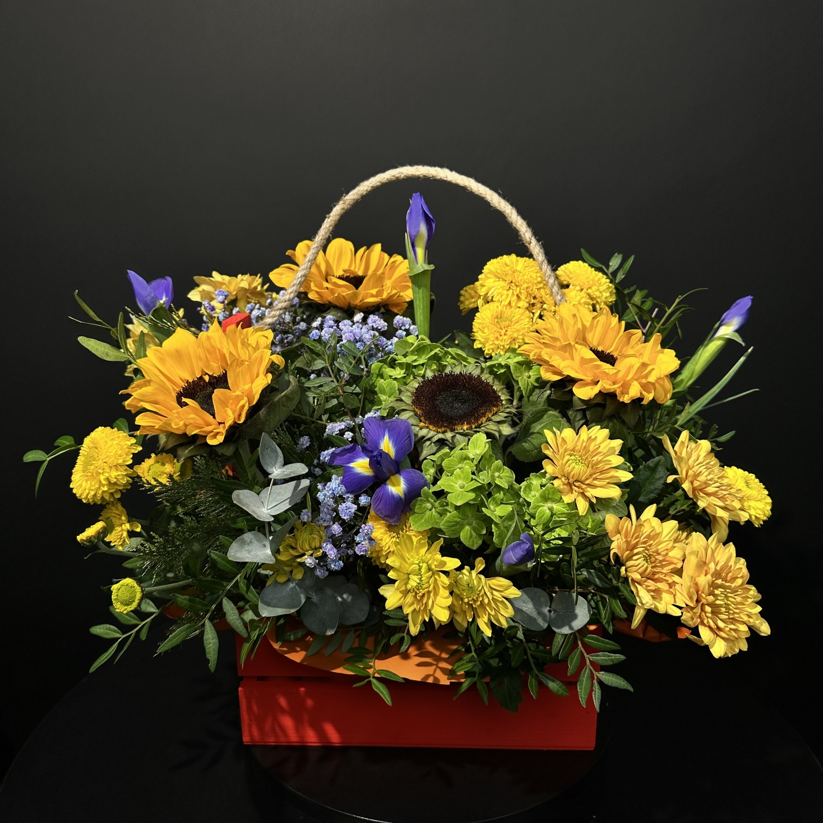 Состав: ирис 4, хризантема кустовая 4, гортензия 1 и прочее. под заказ