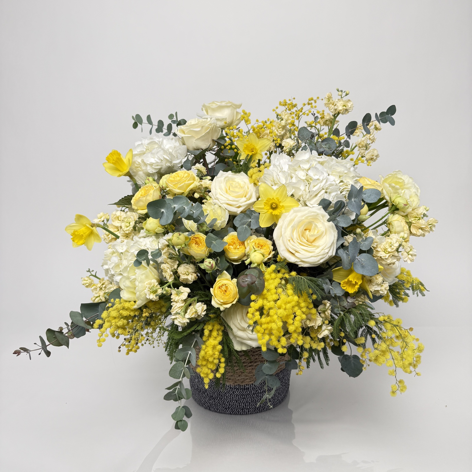Состав: маттиола 10, роза 9, гортензия 5, тюльпан 3, роза кустовая 3, эвкалипт 3 и прочее. под заказ