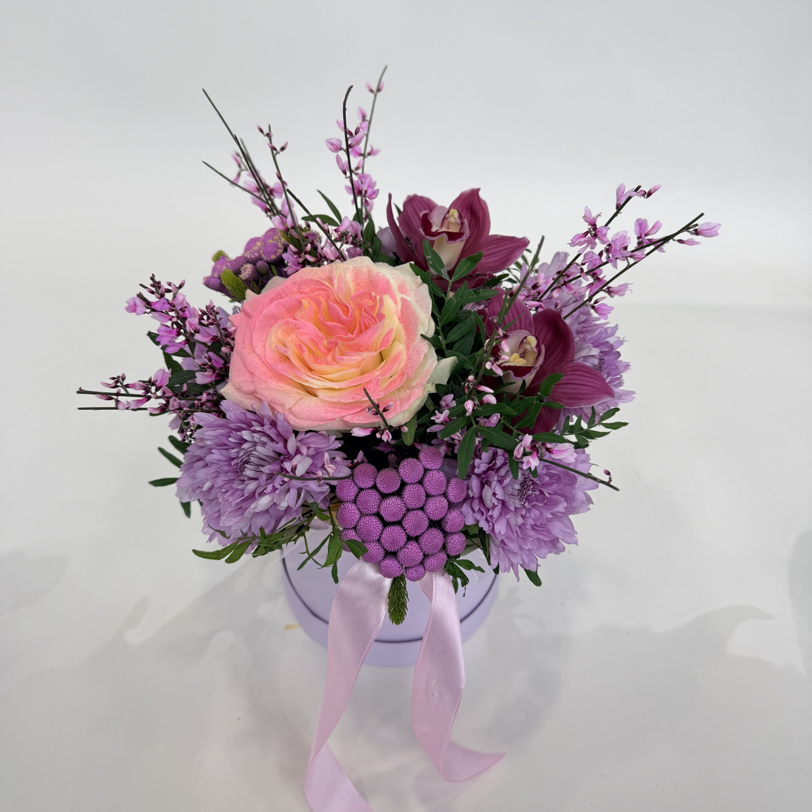 Состав: бруния 2, роза 1, хризантема кустовая 1, фисташка 0,25, ветка цимбидиум 0,2 и прочее. под заказ