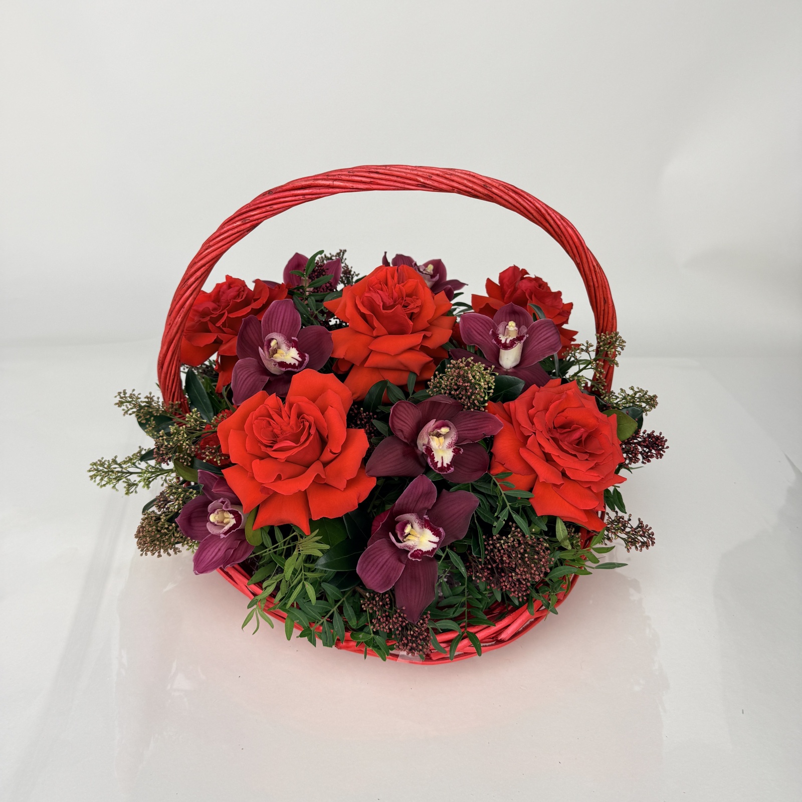 Состав: роза 5, гвоздика 5, ветка цимбидиум 0,5, фисташка 0,5 и прочее. под заказ